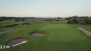 Par 4 assez long avec le vent dans le dos. Mise en jeu en faisant attention aux sapins qui se trouvent sur la gauche ainsi qu’au hors limites qui longe tout le trou sur le côté droit. Deuxième coup vers un green non défendu excepté par les bunkers avant le green à gauche et par le bunker à droite du green.