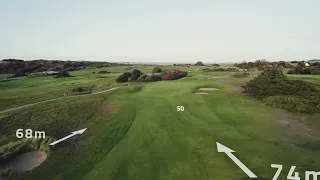 Par 4. Mise en jeu sur la partie droite du fairway pour éviter la partie gauche en dévers vers le rough. Deuxième coup vers un green dont la partie gauche mène vers l’avant green en contrebas. Attention aux profonds bunkers qui se trouvent sur la droite du green.