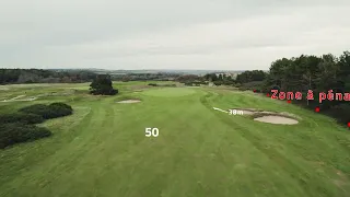 Par 5. Mise en jeu vers les bunkers de gauche (attention au choix du club) ou par dessus le bunker de droite pour les longs frappeurs (attention au hors limites à droite). Deuxième coup vers le green que les plus longs d’entre vous pourront atteindre en deux. Pour les autres, le troisième coup sera court et devra être précis vers un green profond. Attention au profond bunker à l’entrée du green à gauche.